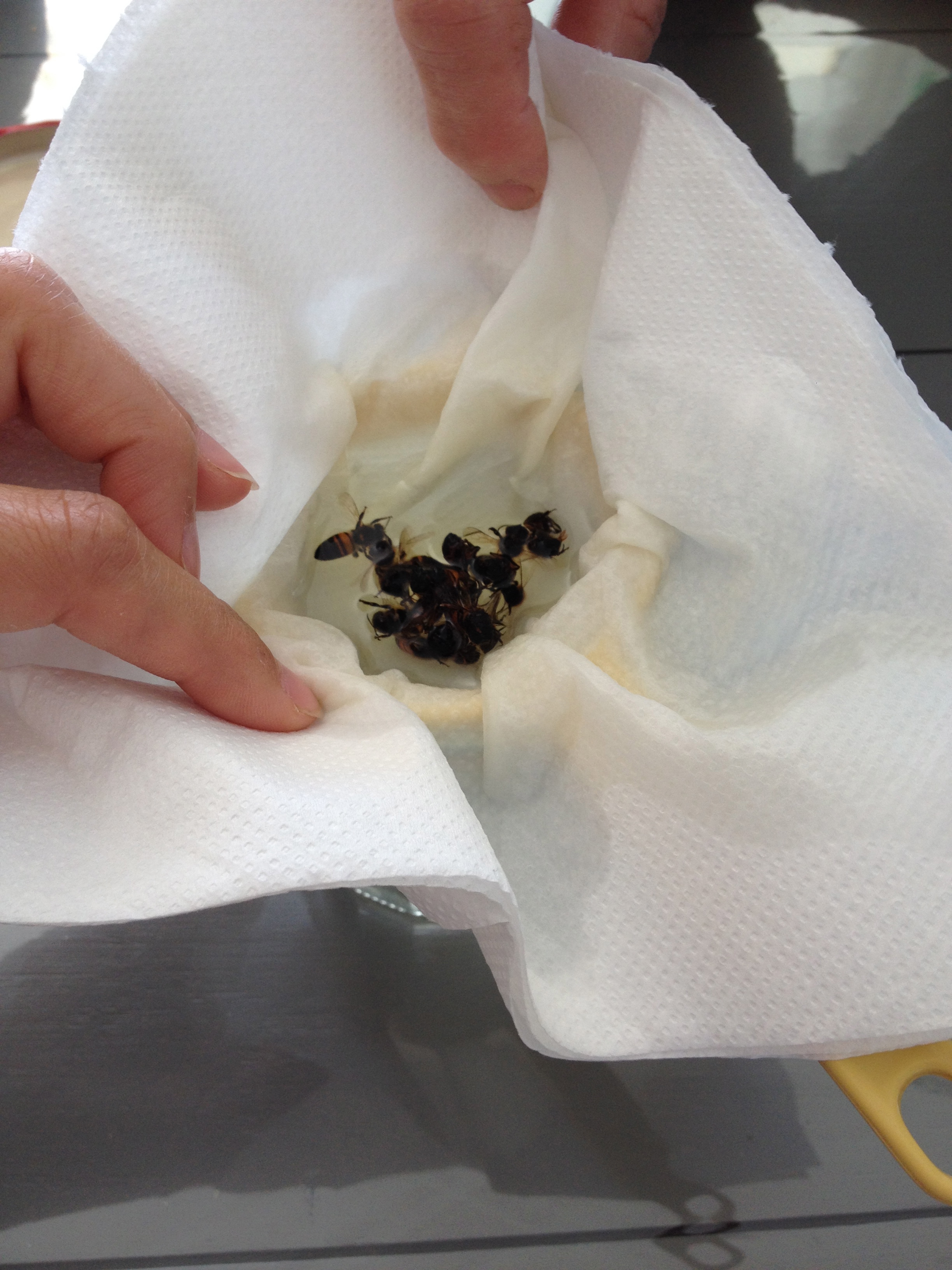 Cet après-midi j’ai effectué un comptage d’abeilles avec le test du « lavage ».