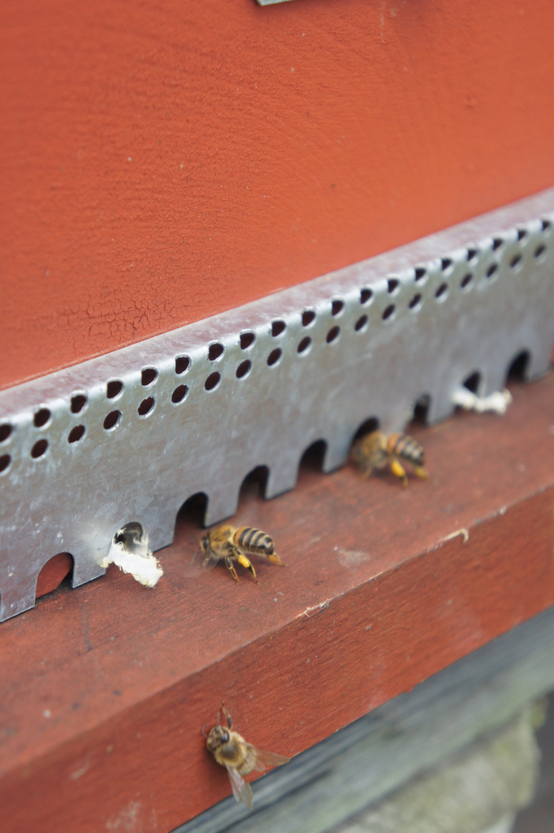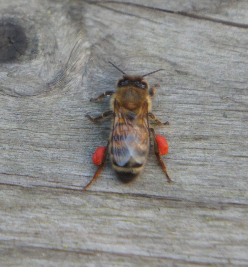 En arrivant j’ai pu observer de l’activité sur la ruche que j’ai nourri au candi, et j’ai même vue des abeilles avec du pollen aux pattes.