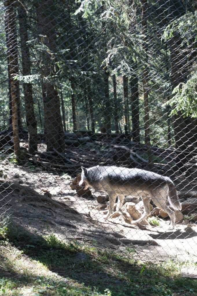 1er aout : Direction le parc Alpha, réserve de loup. J’ai été assez surprise de voir les loups dans les enclos, qui me semblent petits…..
