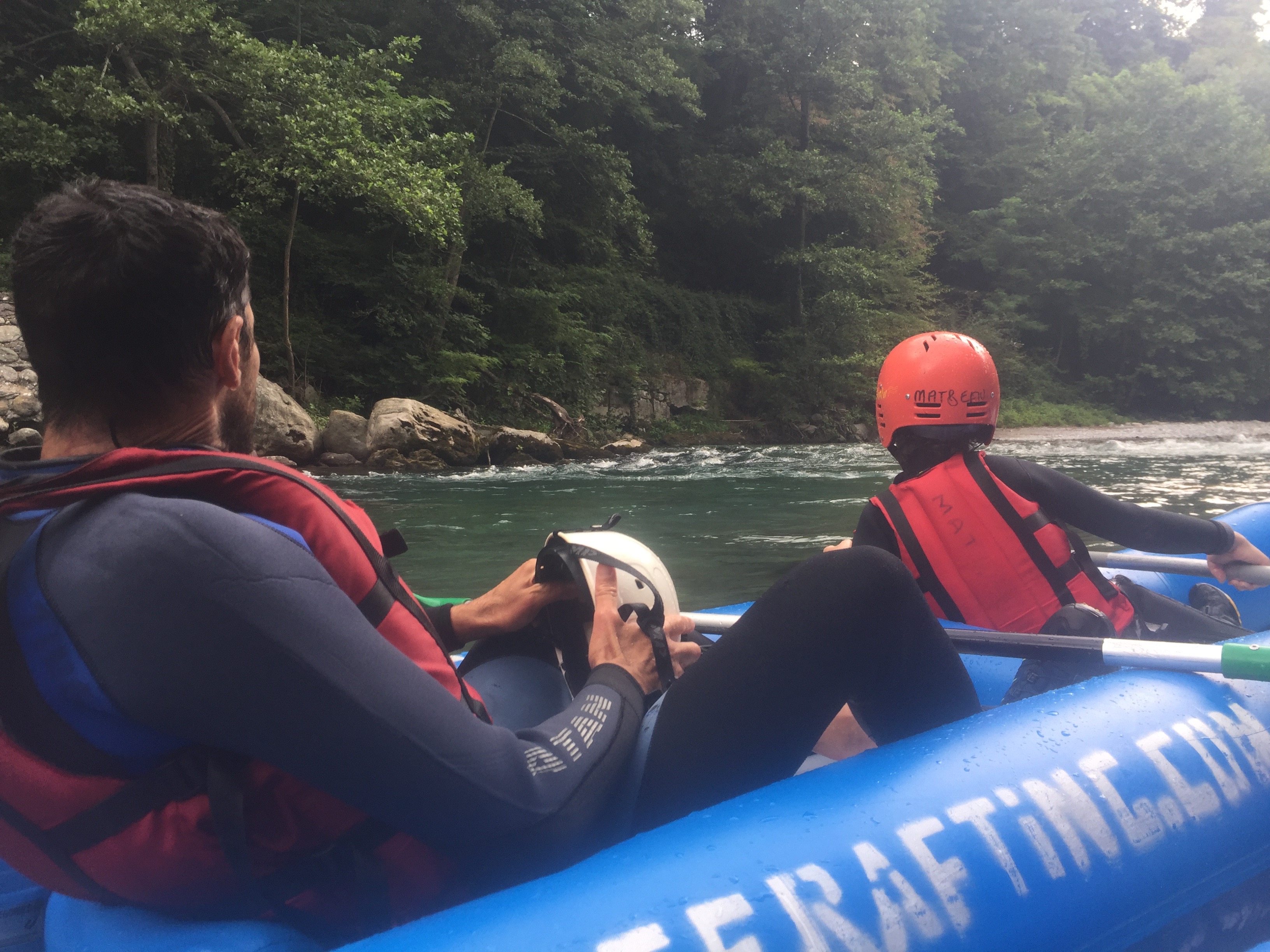 Au départ nous avions choisi un rafting classique, mais avec le covid, le partage de bateaux en groupes qui ne sont pas de la même famille n’est pas autorisé. Nous aurons donc des canoë rafting, avec un guide pour 2h de descente.