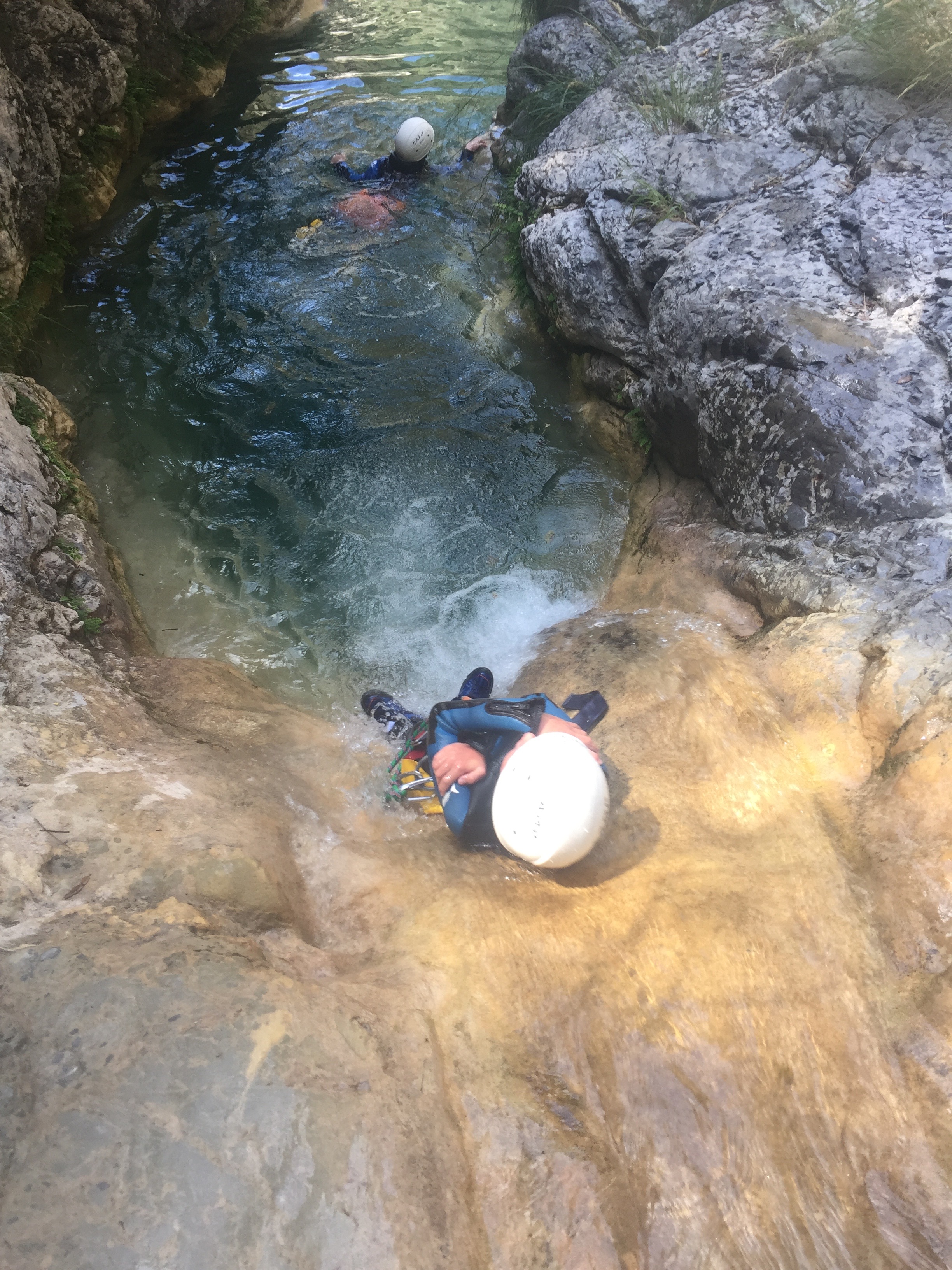 5 aout : retour chez Math & Eau, mais pour une matinée canyoning cette fois : Fanghetto. Nous étions avec une famille de 3 personnes. Petit groupe. Nous sommes les premiers à démarrer le canyon. Le guide est super, il mets bien en confiance les enfants qui finiront par sauter de 4m à la fin du canyon. L’eau est claire, chaude…. le bonheur total cette sortie.