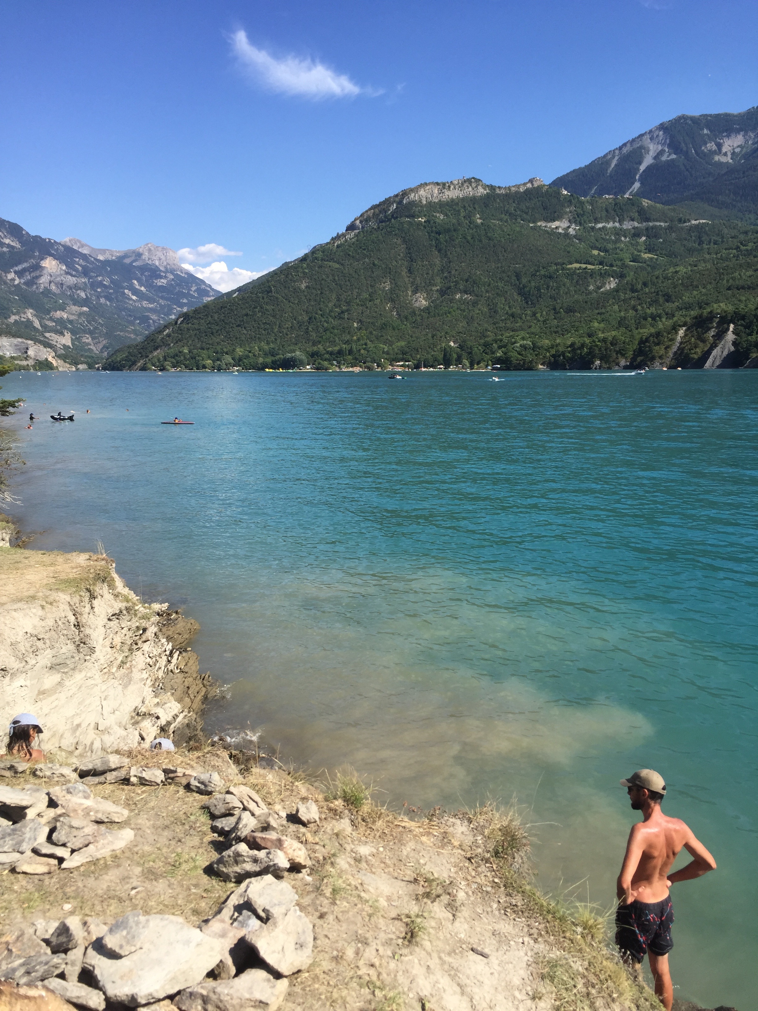 31 juillet : Départ depuis Valence, direction le lac de Serre Ponçon pour une première étape. Nous retrouvons mon père pour le pique nique, qui est en vacances non loin de là.