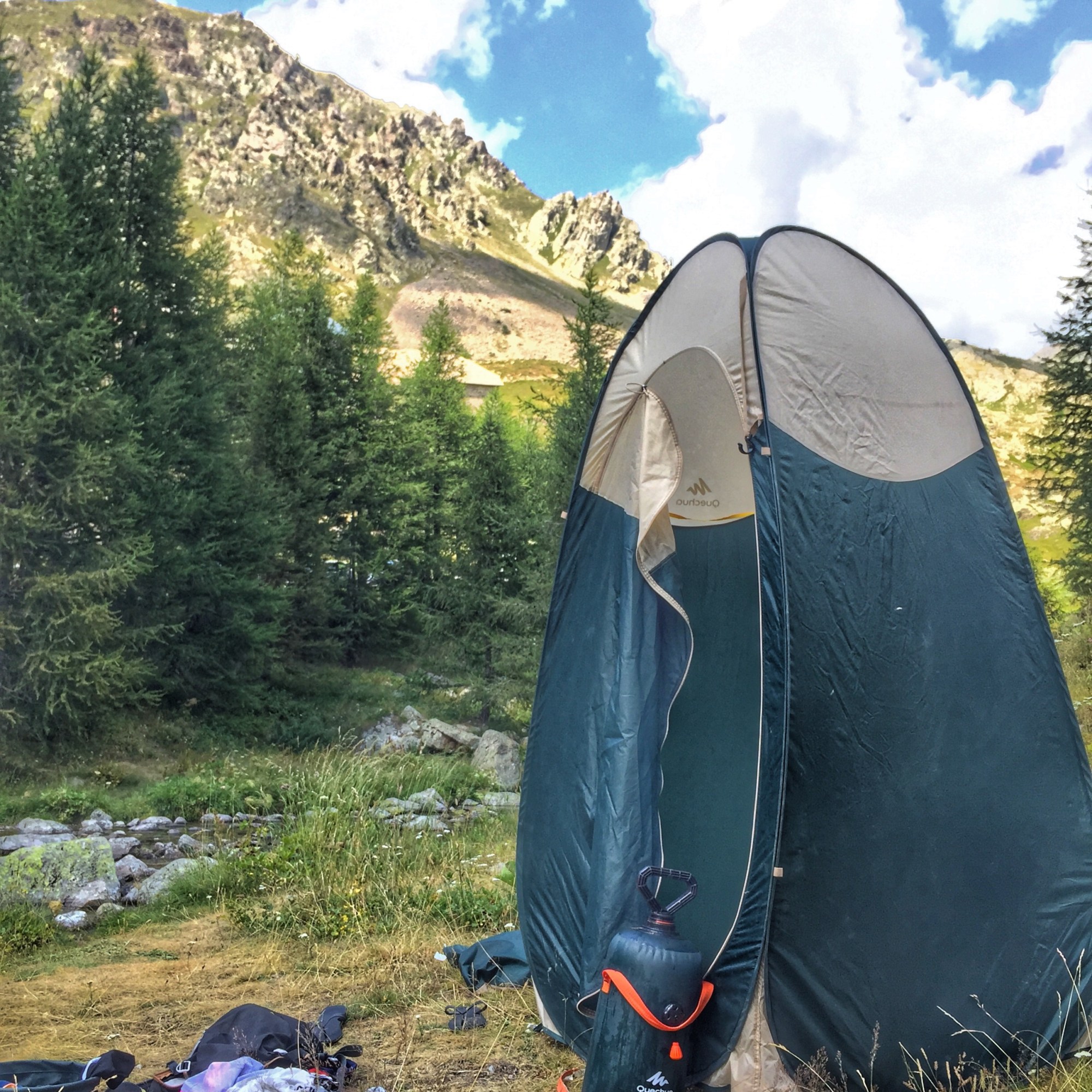 Après une bonne pause, nous descendons. Nous profitons tranquillement du reste de l’après-midi pour nous doucher en bord de rivière, et profiter de la vue.
