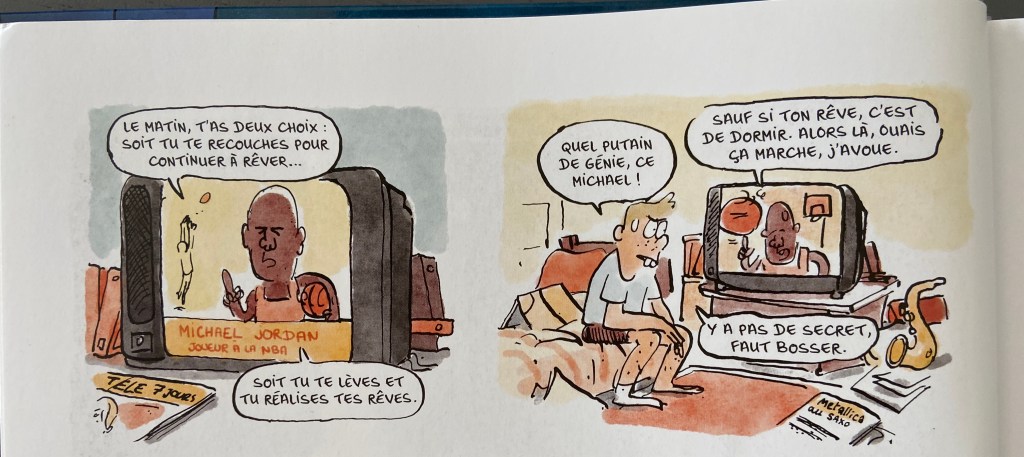 On me dit souvent que je suis courageuse et forte… mais je pense pas l’être plus qu’une autre personne. Quand un truc pareil te tombe dessus, bah t’as pas le choix, faut te bouger….Ca me fait penser à un extrait de la BD de « dans la combi de Thomas Pesquet » (au passage je vous la conseille elle est tordante!)