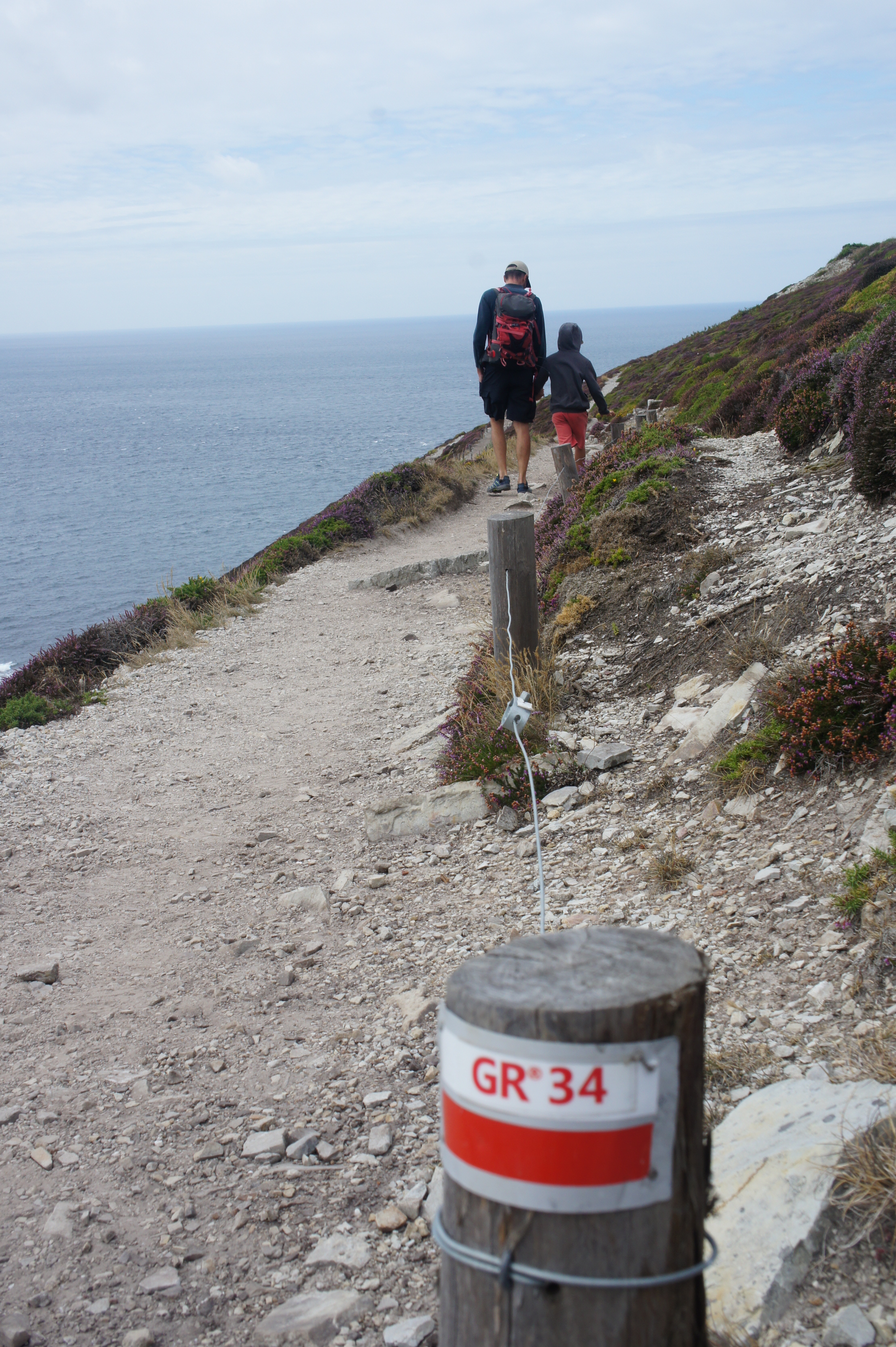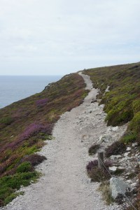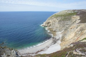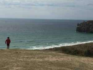 Après une nuit tranquille, direction Crozon et le Cap de la chèvre pour faire un bout du GR34. Il y a beaucoup de vent. L’eau est turquoise,c ‘est très joli.