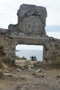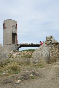 Ensuite nous longeons la côte, et à la demande du grand, nous nous arrêtons voir les ruines d’un manoir. Cet arrêt nous permet d’apercevoir une jolie plage en contre-bas, où nous allons faire un petit apéro et un petit plouf baignade pour les plus courageux. Pas de douche à l’horizon, donc pas idéal de se rincer avec les bidons d’eau…. note pour plus tard : investir dans une douche solaire! un garde côte vient nous interpeller pour nous rappeler l’interdiction de dormir ici, mais nous fourni un plan avec les lieux où il est autorisé de dormir.