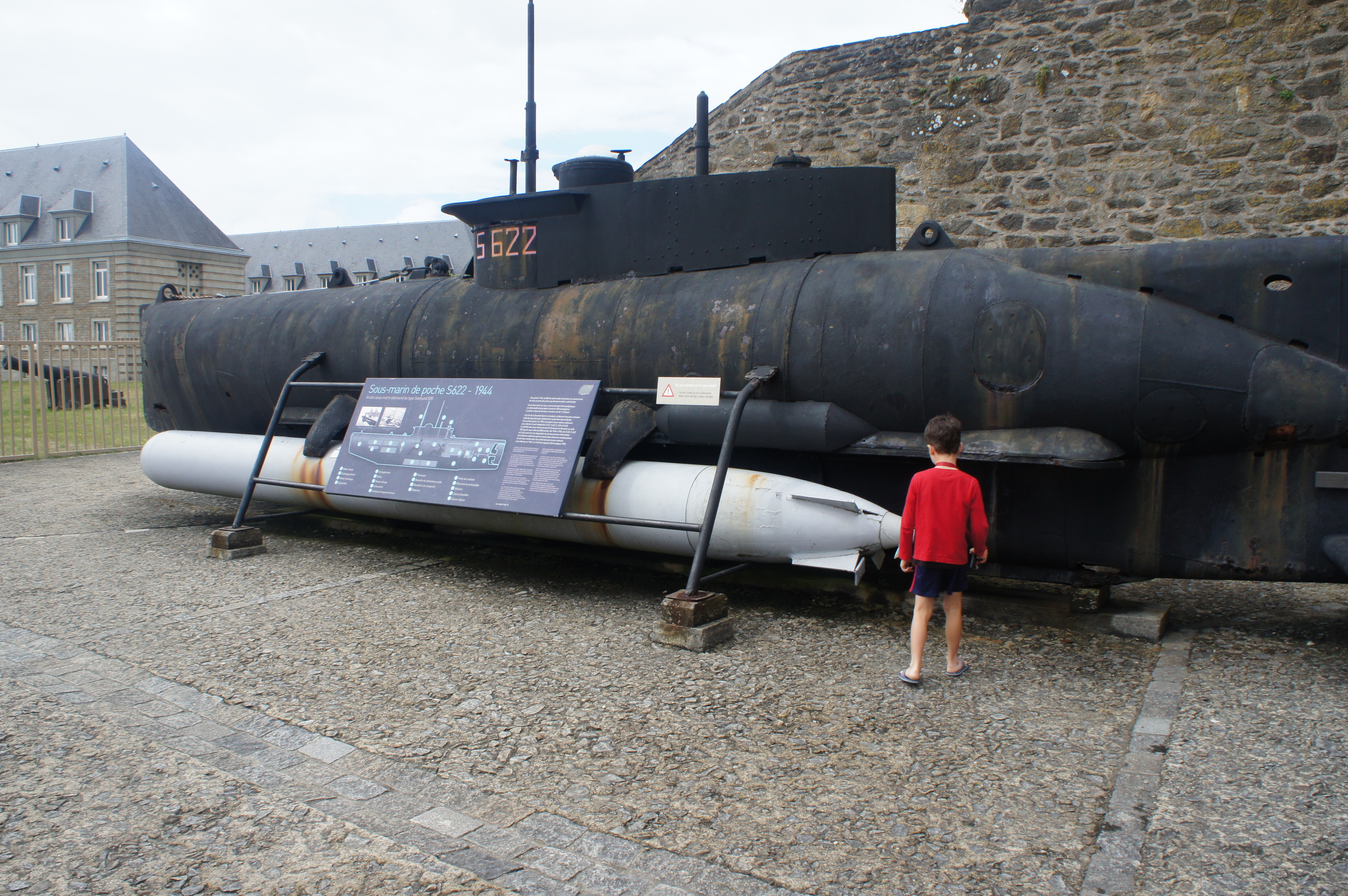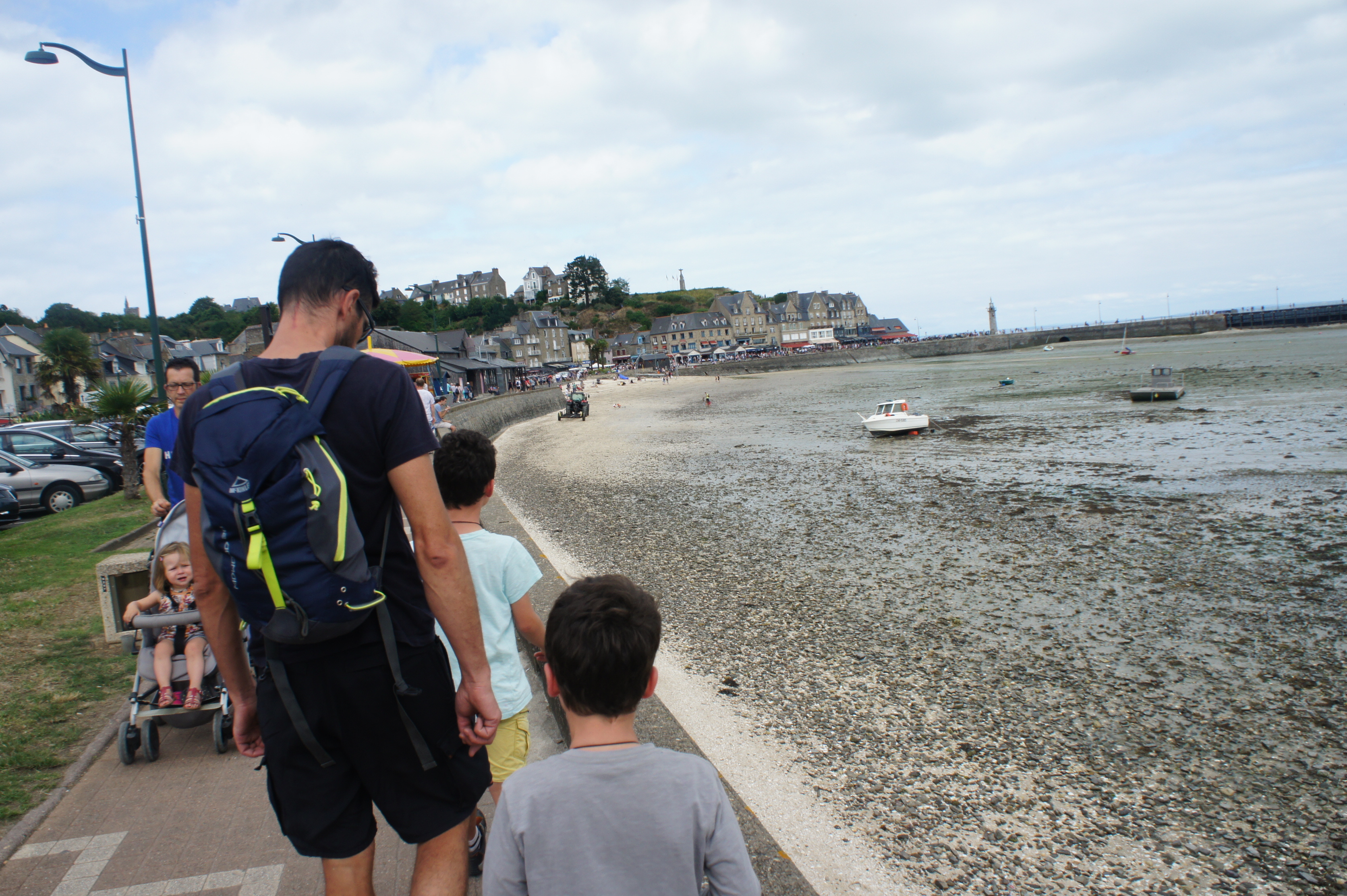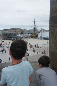 Après un pique-nique improvisé sur le parking, et une fois la dépanneuse partie, nous allons dans le centre de St Malo. Quelle galère pour trouver une place…..! Nous tournons un long moment avant de trouver une place à 2,7 km du centre ville….! les enfants sont motivés pour marcher car ils ont repérés des beaux bateaux, mais ça ne sera pas la même au retour…..!