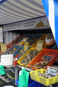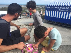 Même si le mois d’aout n’est pas le meilleur pour les huitres, nous nous délestons de crustacées au marché…. 5 euros la douzaine, ça appelle à la dégustation 🙂