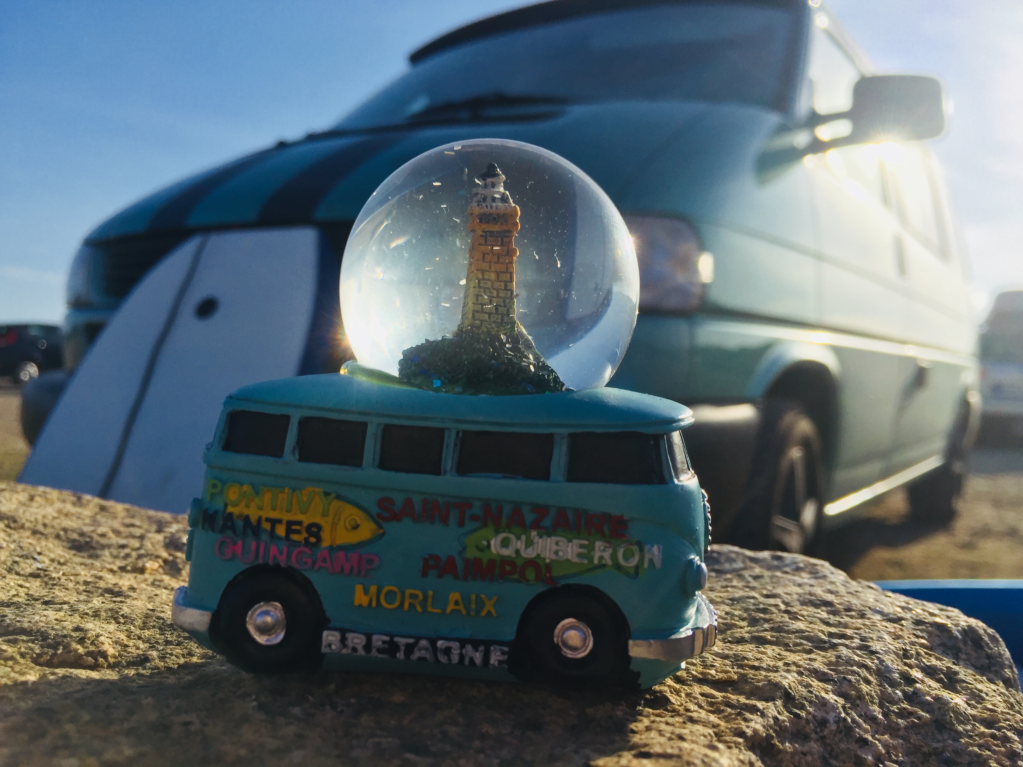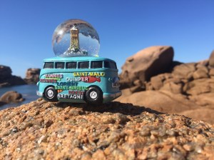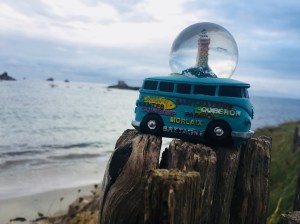 Petit goûter à la pointe, et premier souvenir acheté. C’est à la pointe du Raz que je fais l’acquisition de ce qui sera la mascotte du voyage : une boule à neige avec un van.