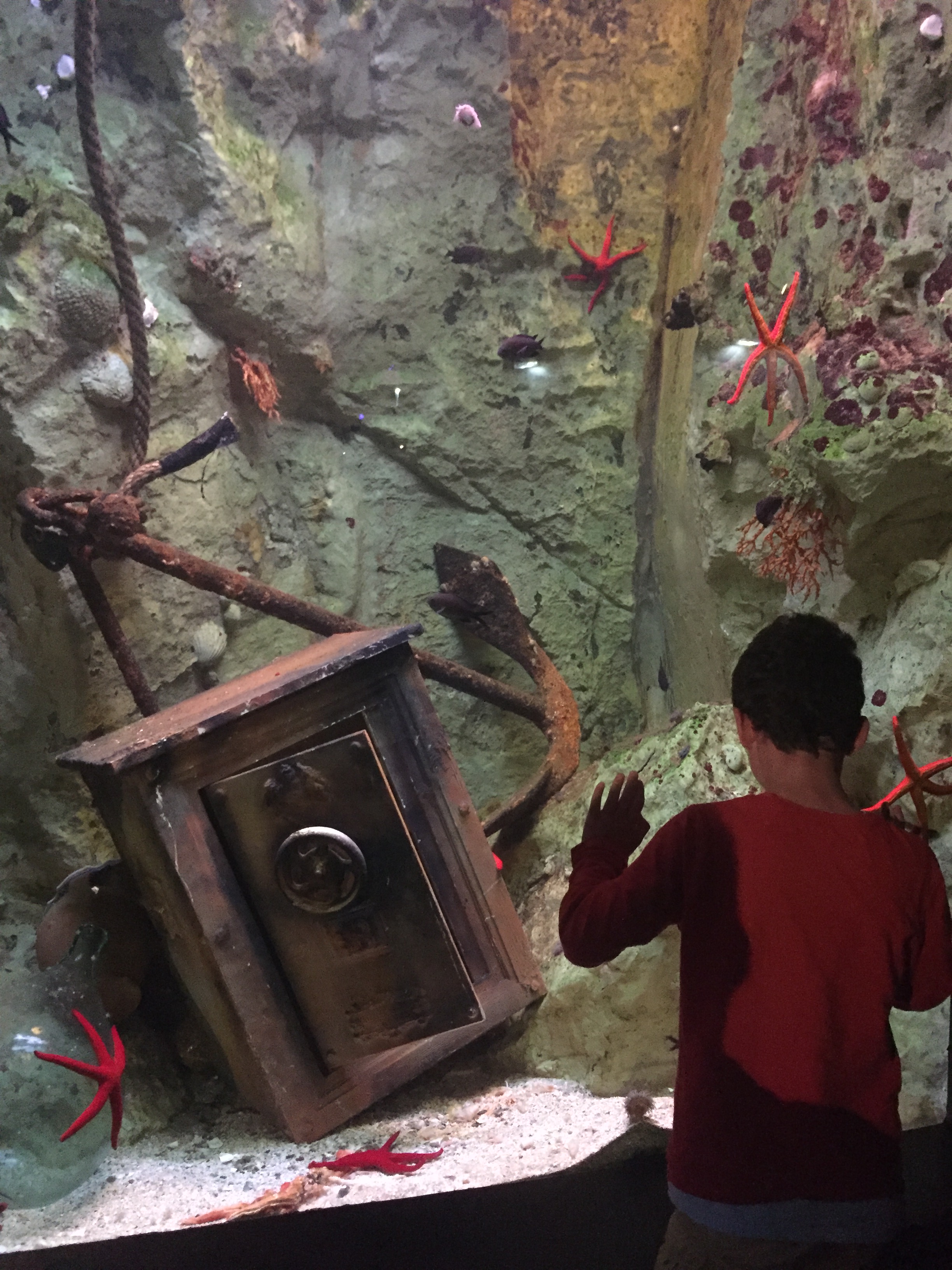 A 9h45 nous arrivons à l’aquarium de St Malo…à temps avant qu’une immense queue ne se forme derrière nous….! Cet aquarium est super pour les enfants. Il y a même le nautibus. Un petit sous-marin suspendu qui nous emmène dans les fonds marins de l’aquarium…. puis un simulateur de descente dans les abysses d’un sous marin qui coule.