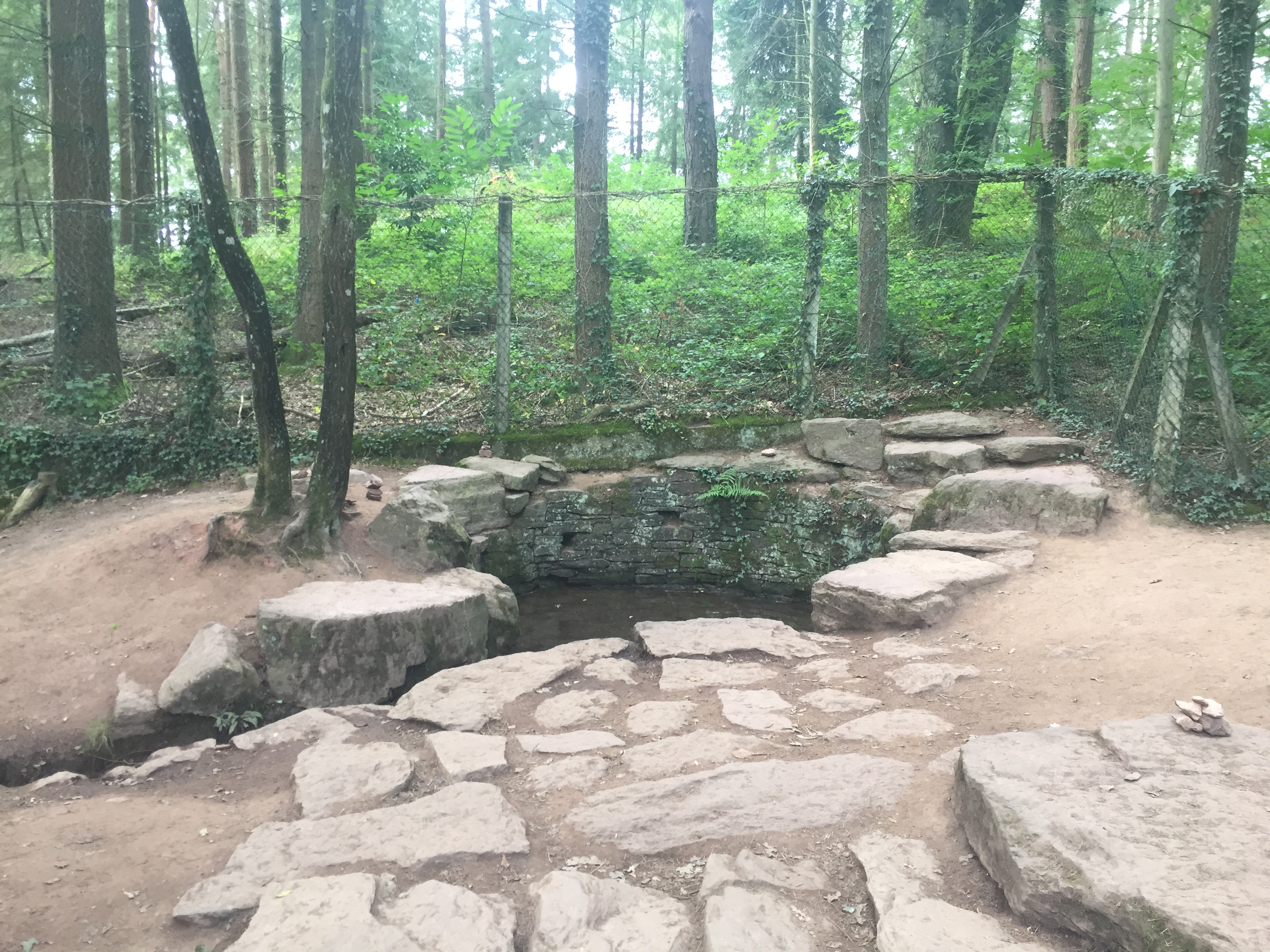Première ballade : tombeau de merlin et fontaine de jouvence. Comme il est encore tôt il n’y a pas encore trop de monde. tour de 4 km dans la forêt.