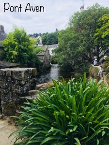 Pause pique-nique à Pont Aven où c’est assez touristique. Nous croisons un joueur de cornemuse, c’est rigolo!