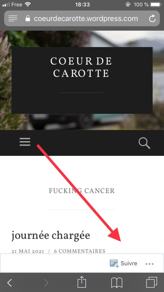S’abonner au blog Petit tuto en image pour vous abonner…. lire c’est bien, vous abonner c’est mieux 😉 depuis un ordinateur, en haut à droite cliquez sur « Suivre coeur de carotte » depuis son tel. portable, en bas à droite cliquez sur « Suivre coeur de carotte » Partager: Cliquer pour partager sur X(ouvre dans une nouvelle fenêtre) X Cliquez pour partager sur Facebook(ouvre dans une nouvelle fenêtre) Facebook J’aime chargement…